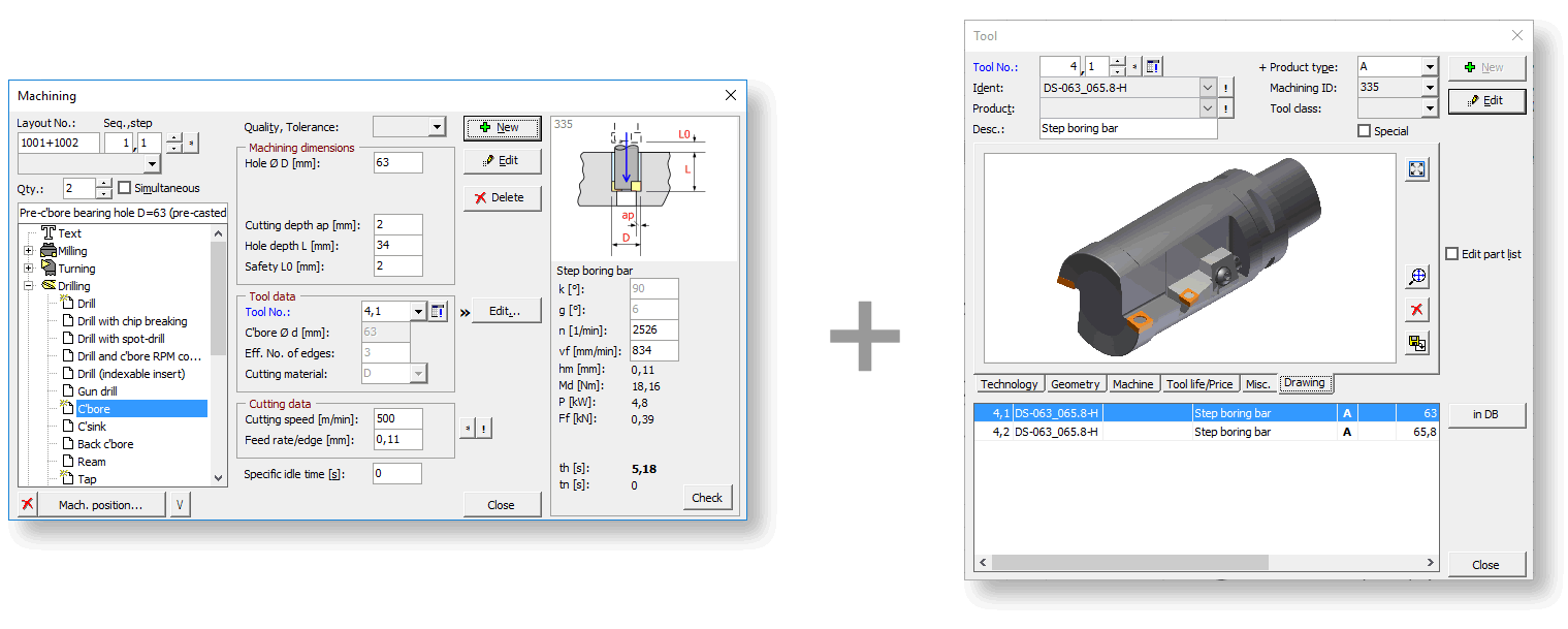 Databases for materials, machines, tools and cutting data are available to the user, thus facilitating and speeding up the entry and calculation of processes.
